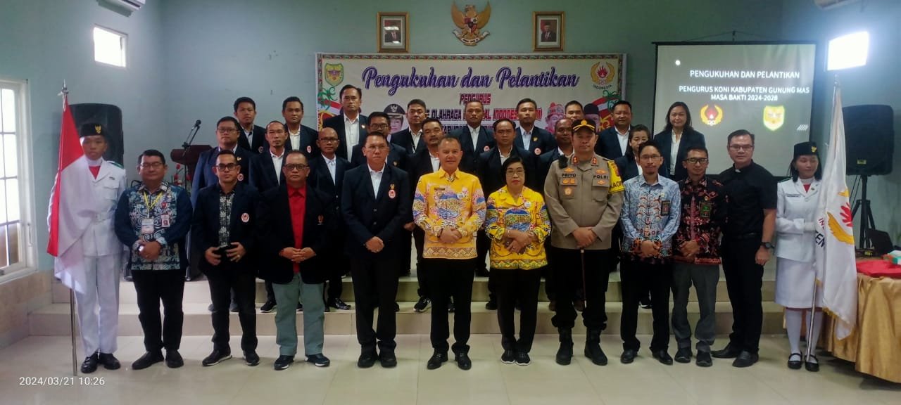 Polres Gunung Mas – Kapolres Gunung Mas, Polda Kalteng, turut hadir dalam acara pengukuhan dan pelantikan pengurus Komite Olahraga Nasional Indonesia (KONI) Kabupaten Gunung Mas bertempat di Aula Hotel Zefanya Jalan Letjend Soeprapto, Tampang Tumbang Anjir, Kurun, Gunung Mas, Kalteng. Kamis (21/3/2024) pukul 09.30 WIB.