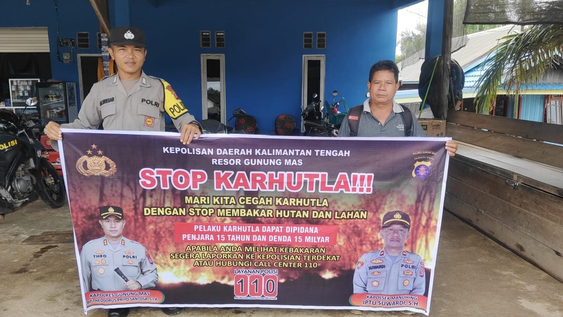 Polres Gunung Mas – Personel Polsek Manuhing, Polda Kalteng, Gunung Mas, Kalimantan Tengah, upaya proaktif untuk meminimalisir kebakaran hutan dan lahan (Karhutla) yang sering terjadi di wilayah tersebut. Langkah-langkah ini bertujuan untuk melindungi lingkungan, menjaga keamanan, dan mencegah kerugian yang disebabkan oleh kebakaran. Minggu (24/3/24) sekira pukul 09.00 WIB.