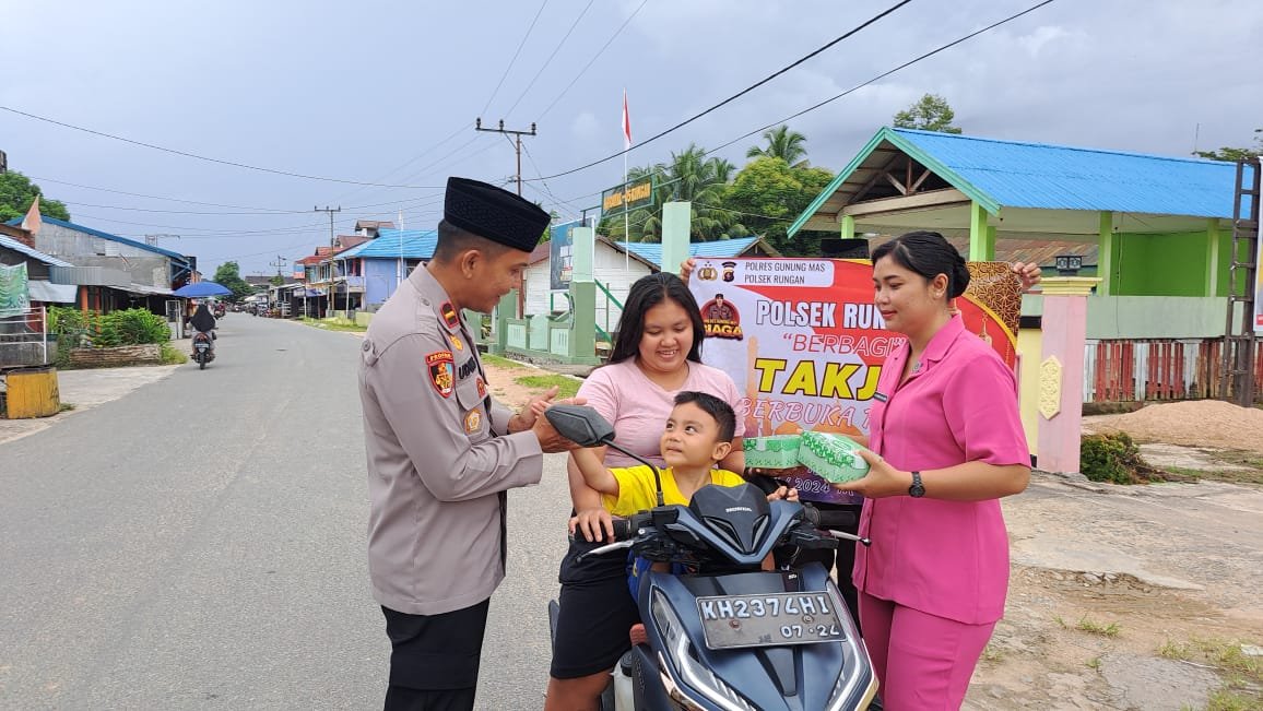 Polres Gunung Mas – Dalam semangat bulan suci Ramadan, Polsek Rungan untuk lebih dekat dengan masyarakat melalui kegiatan berbagi berkah. Bertempat di depan Mako Polsek Rungan, Gunung Mas, Kalteng. Kamis (21/3/2024) sore.
