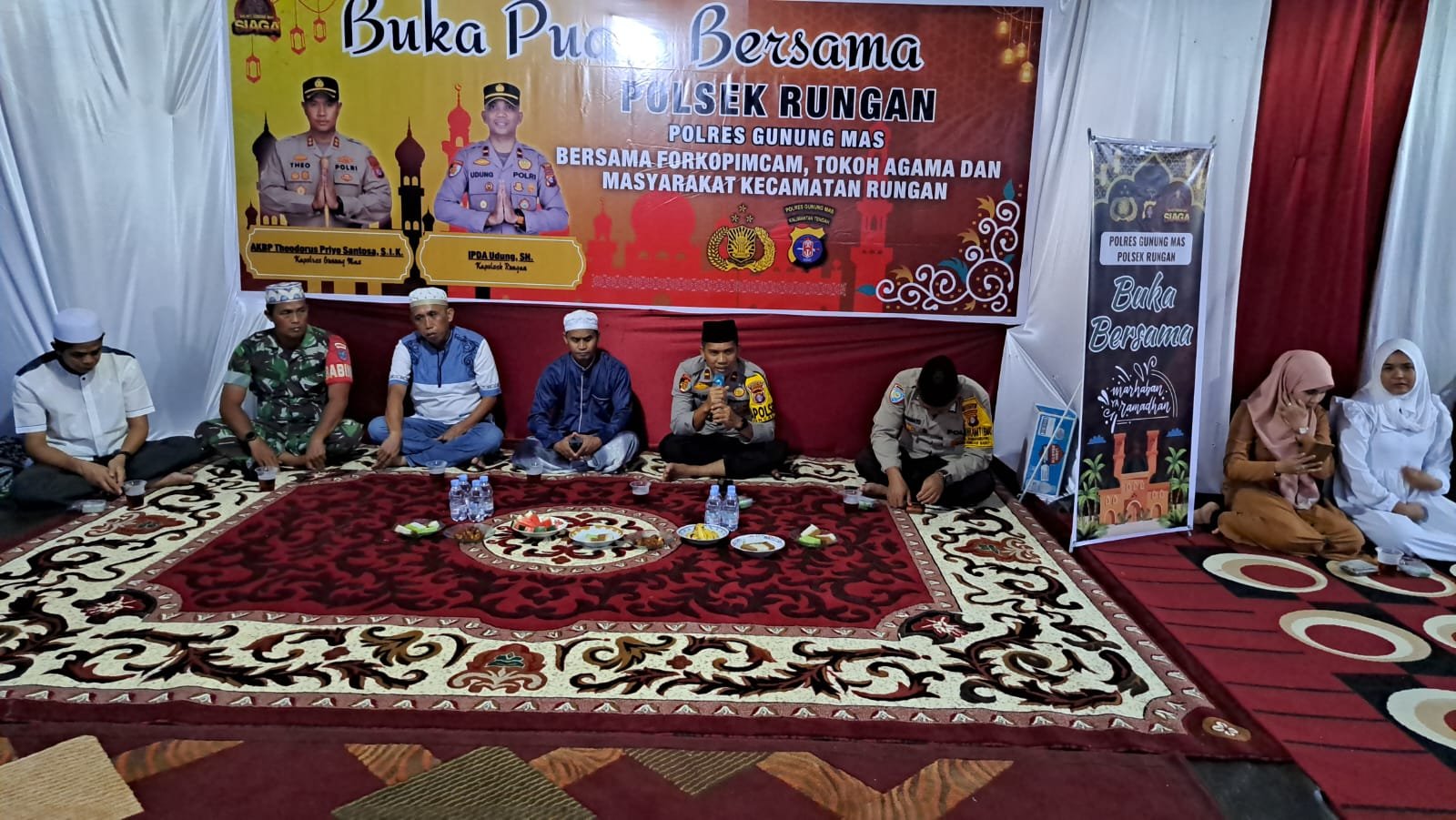 Kapolsek Rungan Ipda Udung, S.H. dalam sambutannya menyatakan, “Kegiatan buka puasa bersama ini merupakan salah satu upaya kita dalam memperkuat sinergi dan kolaborasi antar instansi. Melalui momen ini, kita berharap dapat meningkatkan kebersamaan dan kekompakan, serta mendukung terciptanya situasi yang kondusif di wilayah Rungan,” Ucap Kapolsek.