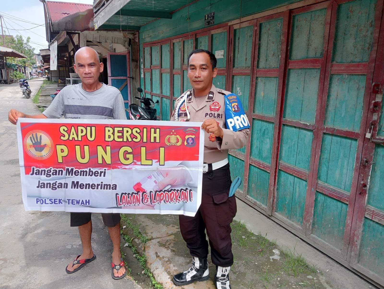 Polres Gunung Mas – Personel Polsek Tewah, Polda Kalteng, Gunung Mas, Kalimantan Tengah, mengedukasi kepada masyarakat setempat tentang bahaya pungutan liar. Langkah ini dilakukan sebagai upaya keras untuk memerangi praktik ilegal ini dan memberikan informasi kepada masyarakat mengenai hak-hak mereka serta konsekuensi hukum yang terkait dengan pungutan liar. Selasa (26/3/24) sekira pukul 11.00 WIB.