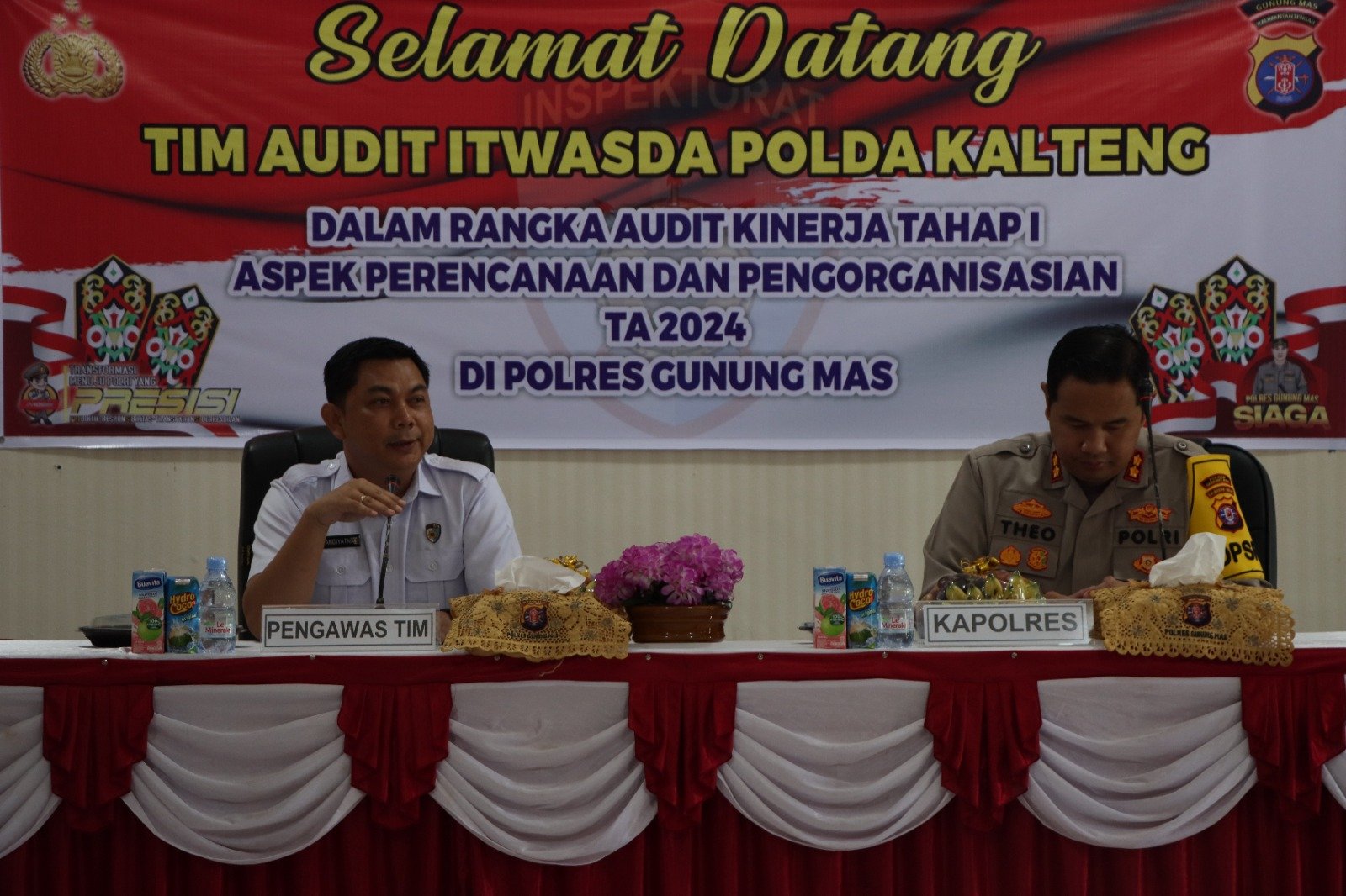 Polres Gunung Mas -Tim Inspektorat Pengawasan Daerah (Itwasda) Polda Kalteng melakukan audit kinerja tahap satu di Polres Gunung Mas. Audit ini bertujuan untuk menilai kinerja Polres Gunung Mas dalam berbagai aspek, dengan fokus pada perencanaan dan pengorganisasian.